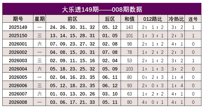 大乐透第2026008期出奖号统计:前区03、06、17、21、33,后区05、11。和值80天元证券--领先配资网站专业操盘更轻松!,012路比4:0:1,冷热比4:1,未开出连号。