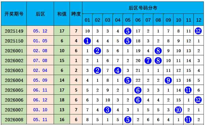 和值走势分析:近10期和值平均值为89.2,上期前区奖号和值为80,与前一期比拟上涨17个点位,本期瞻望和值较上期出号走势上涨,抠门和值限制105-110之间。